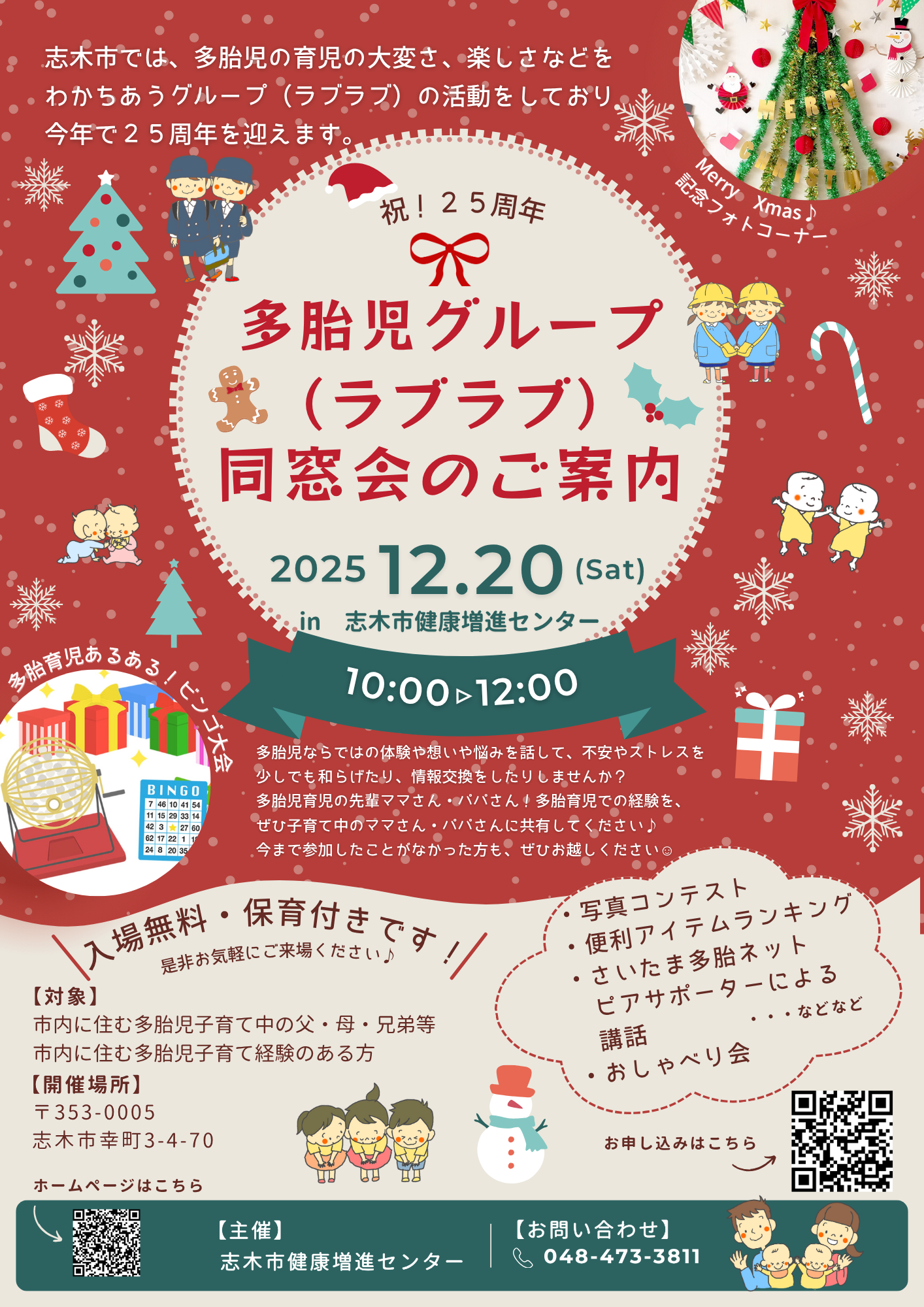 祝25周年!多胎児グループ「ラブラブ」同窓会のご案内