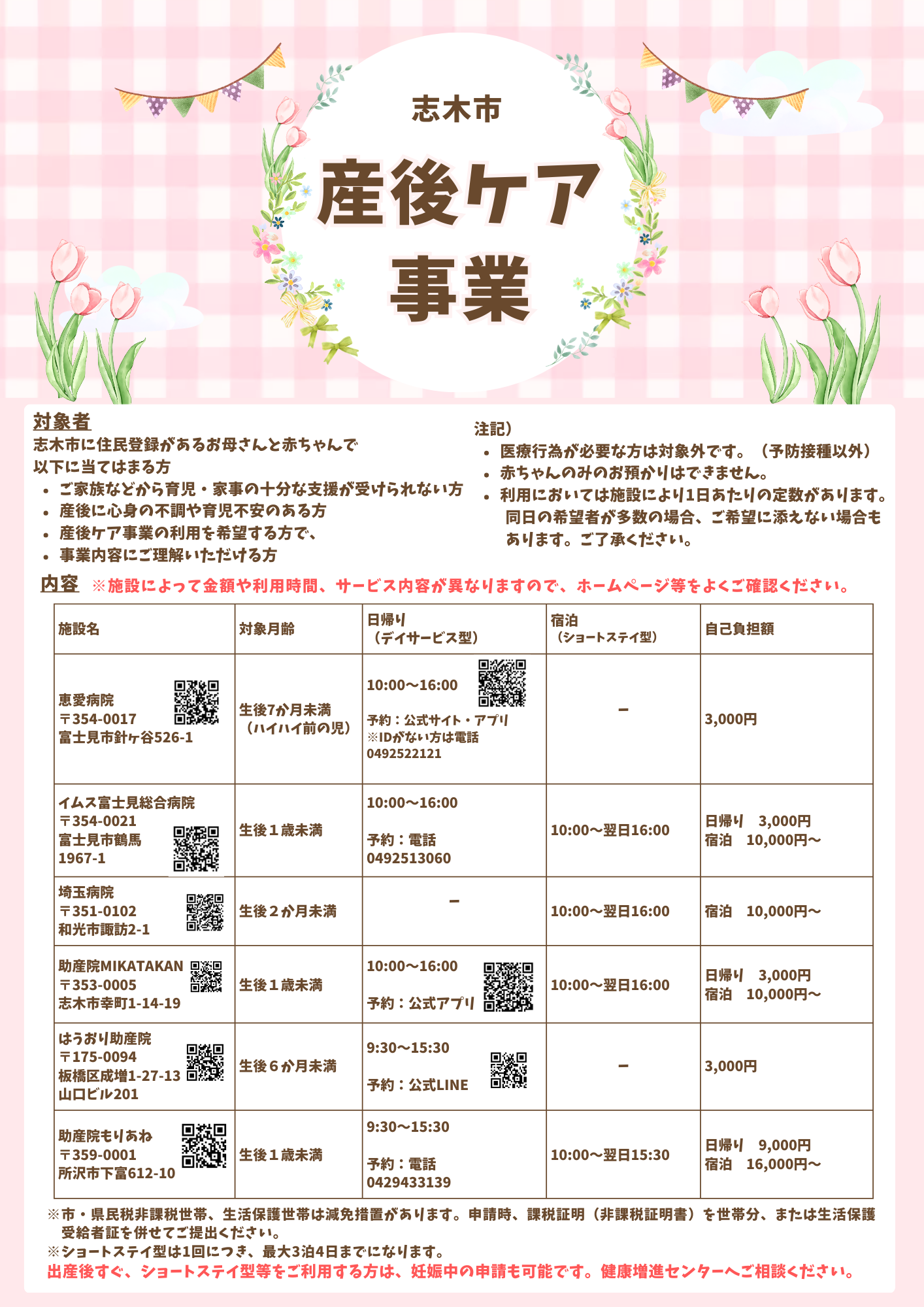 詳しい内容はチラシ・「産後ケア事業の流れ」のファイルをご参照ください。