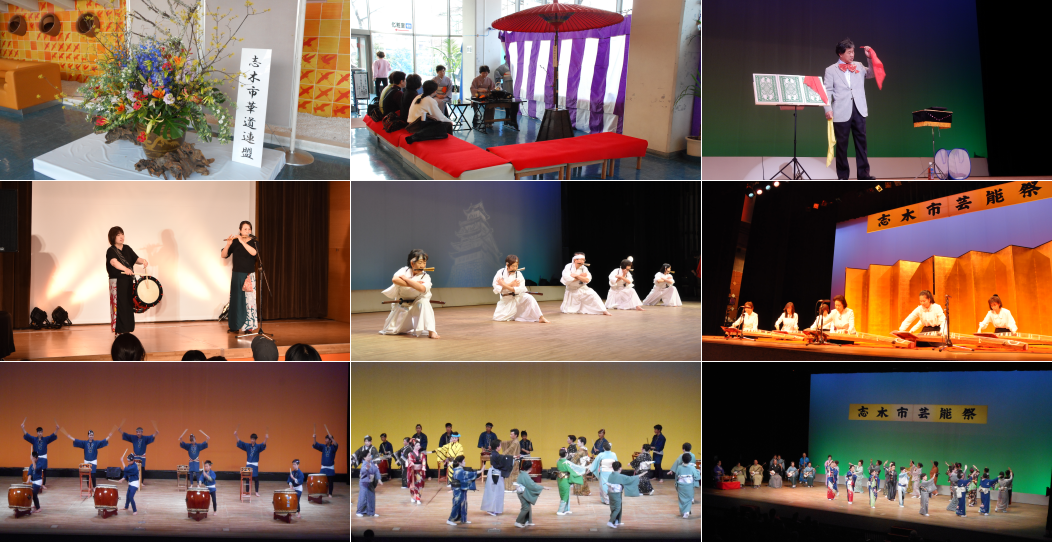 邦舞踊、邦楽、民謡、太鼓、歌謡、洋舞踊、殺陣(たて)、剣舞、手品、吹奏楽、太極拳、華道、茶道等